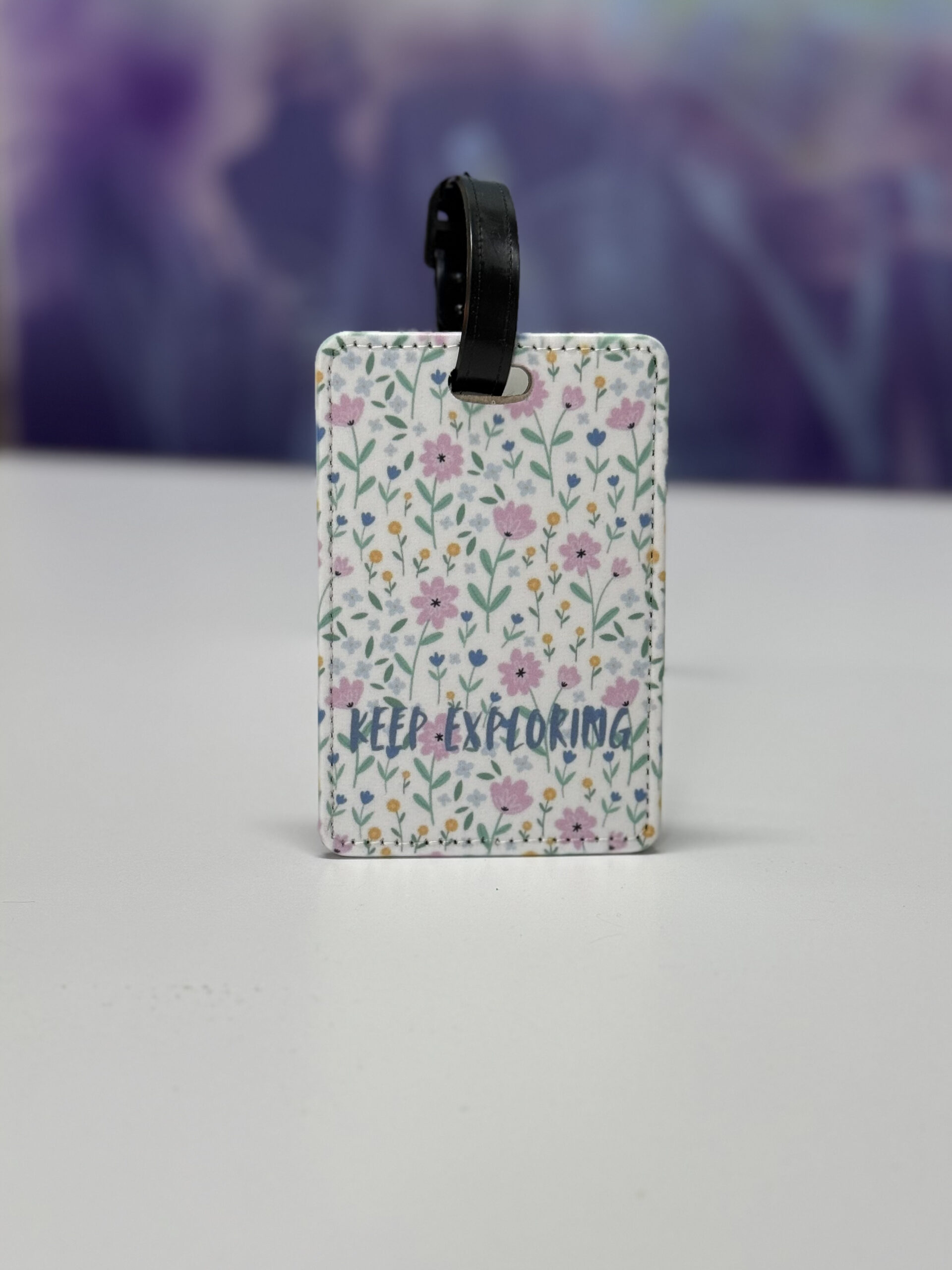 Inspire your travels with our Keep Exploring Flowers Luggage Tag. Featuring a vibrant floral design paired with the uplifting phrase “Keep Exploring,” this tag is crafted using high-quality sublimation for bold, lasting colors and crisp details. Measuring approximately 4 x 2.75 inches, it’s the perfect size for suitcases, backpacks, or carry-ons. Due to our hand-pressing process, no two tags are exactly alike—each one is a unique work of art. Whether as a thoughtful gift for an adventurous spirit or a beautiful accessory for your own journeys, this luggage tag encourages exploration with style.